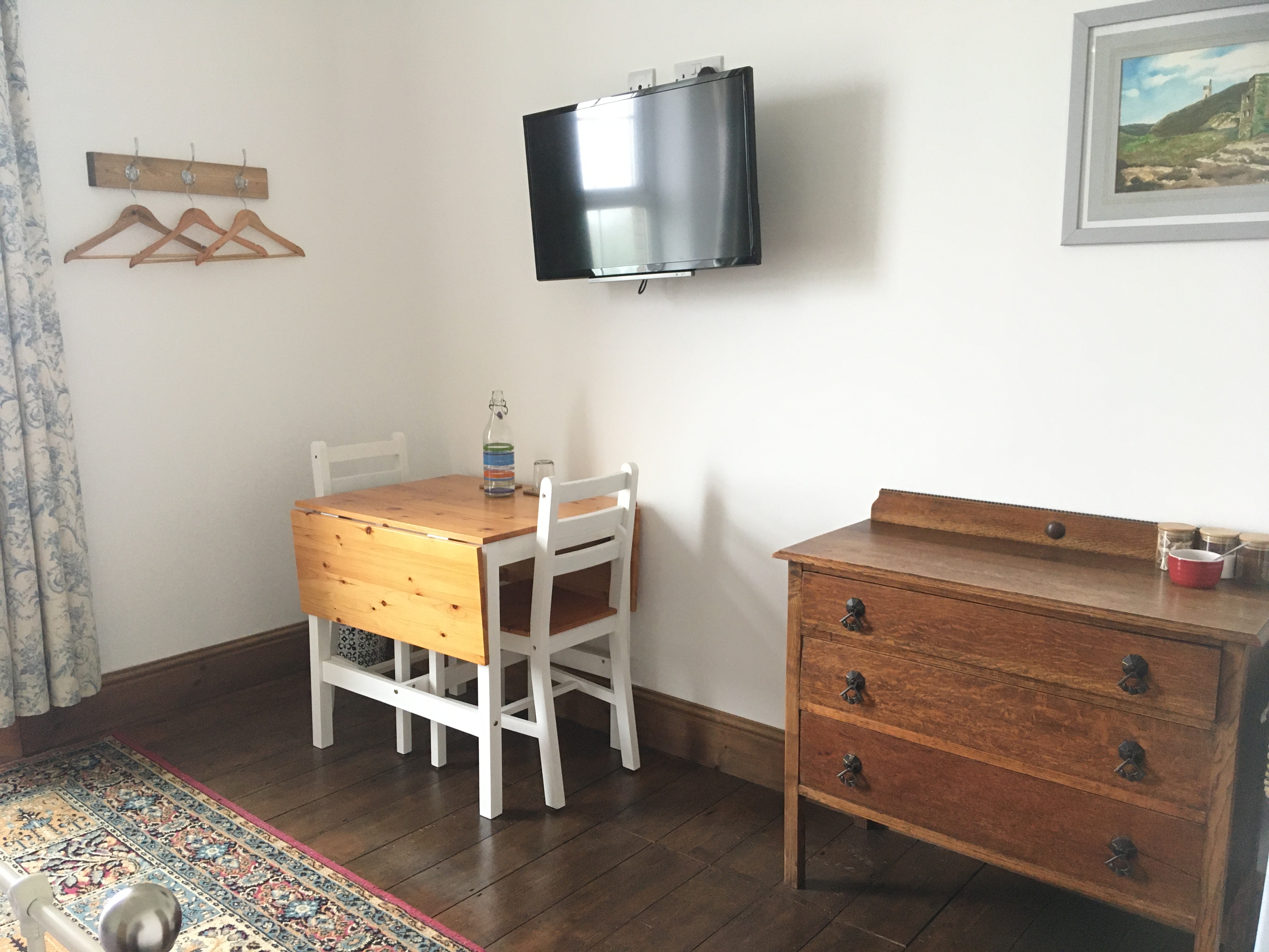 As well as a comfy bed, each room has space to hang or store your clothing, a TV, hot drink making facilities, table & chairs